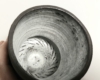 Doppelzylinder-Gefäß mit Fuß, tiefe Rillen, Drehkeramik, schwarzer Ton,